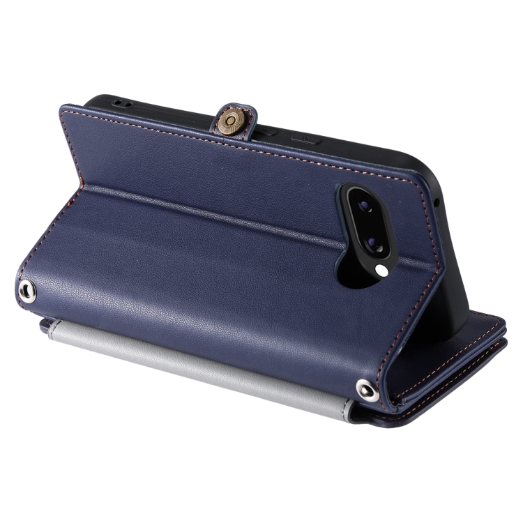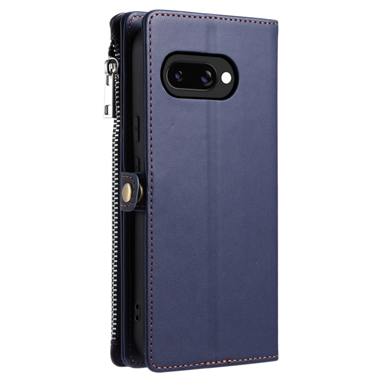 Funda de Cuero para Google Pixel 9A con Cremallera y Ranura para Tarjetas (Azul)
