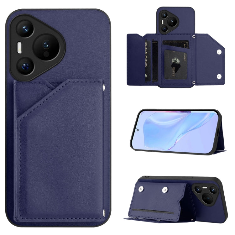 Funda para Teléfono Huawei Pura 70 Skin Feel con 4 Ranuras para Tarjetas y Correa para Muñeca (Azul)