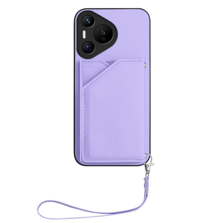 Funda para Teléfono Huawei Pura 70 Skin Feel con 4 Ranuras para Tarjetas y Correa (Morado)