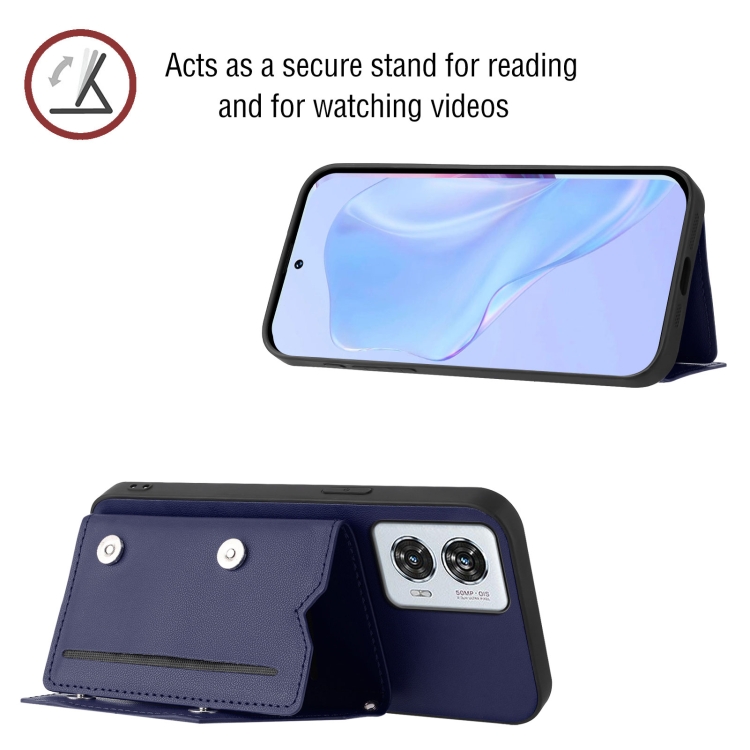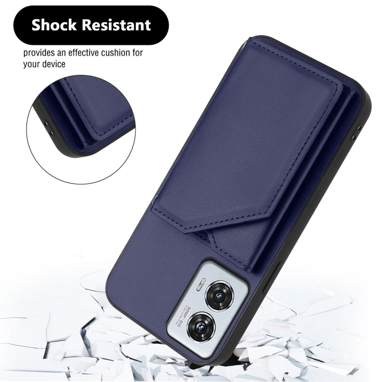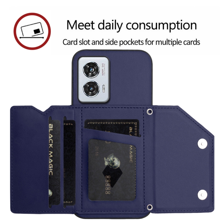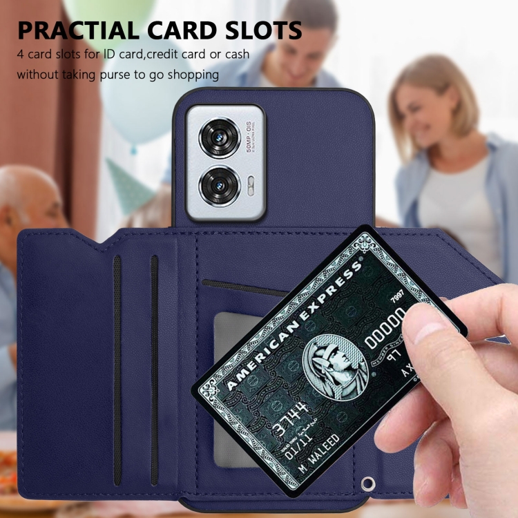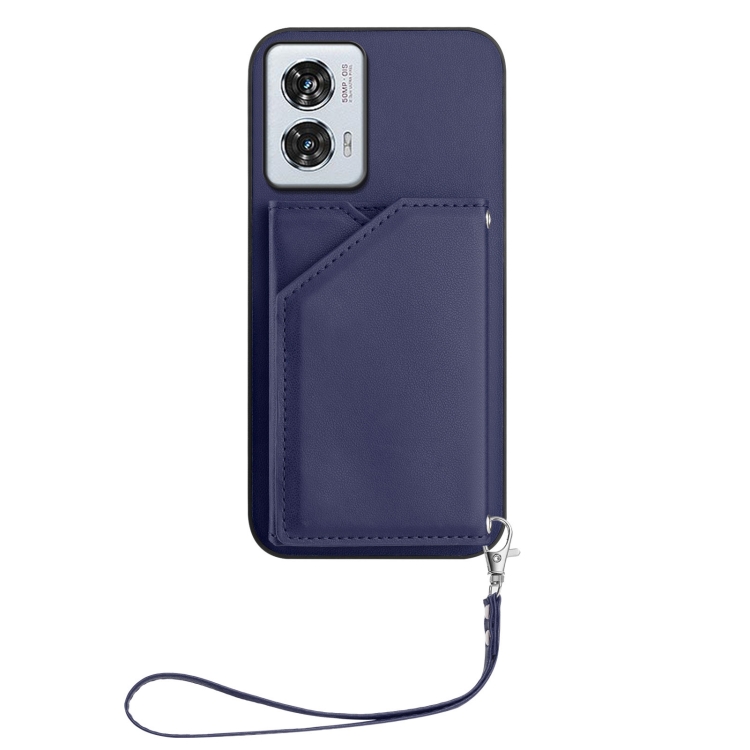 Funda para Teléfono Motorola Edge 50 Fusion Skin Feel con 4 Ranuras para Tarjetas y Correa para Muñeca (Azul)
