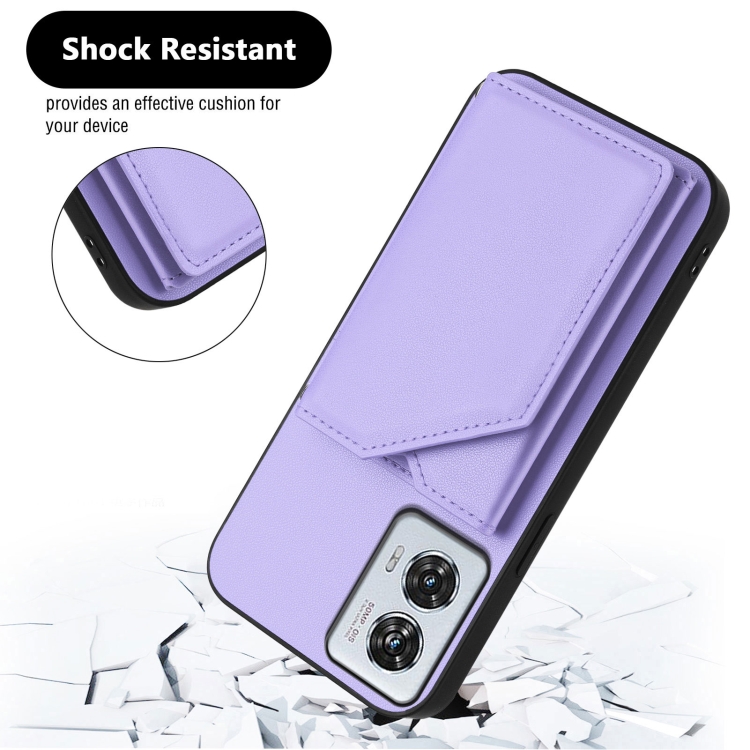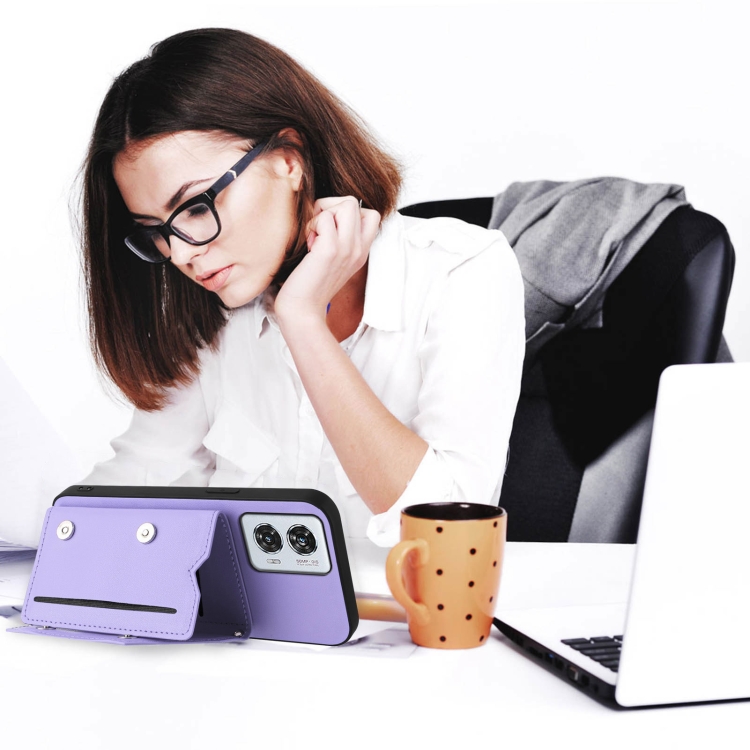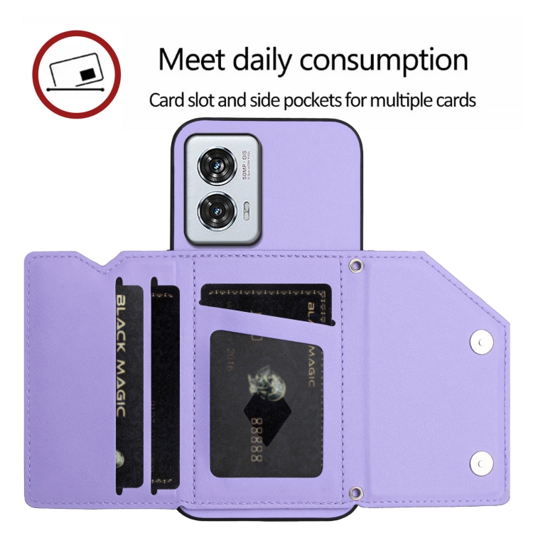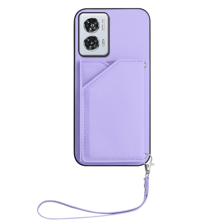 Funda para Motorola Edge 50 Fusion Skin Feel con 4 Ranuras para Tarjetas y Correa para Muñeca (Morado)