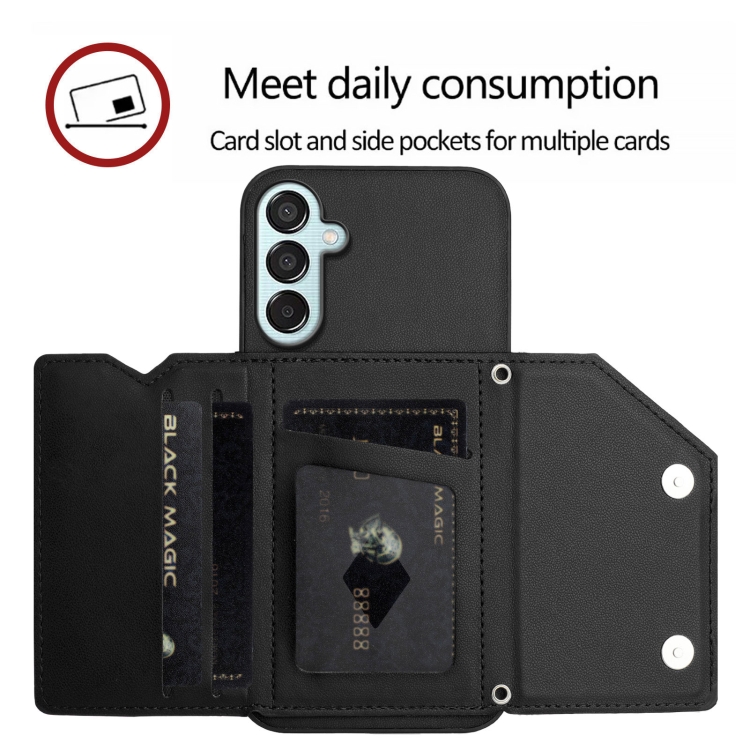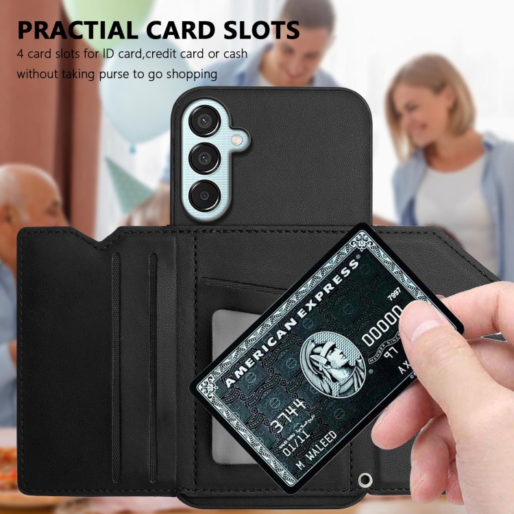 Funda para Teléfono Samsung Galaxy M15/F15 con 4 Ranuras y Correa para Muñeca (Negro)