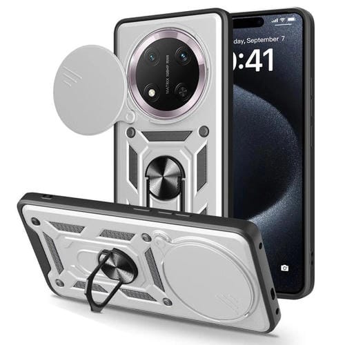 Funda para Honor X60 Pro/X9C con Diseño de Cámara Deslizante TPU y PC (Plateada)
