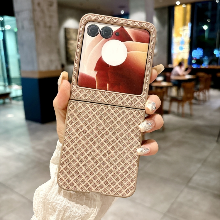 Funda para Teléfono Motorola Razr 50 Ultra con Diseño de Rombos y Diamantes Brillantes (Dorada)