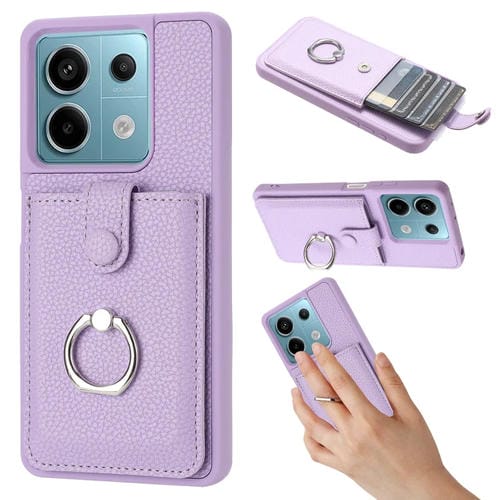 Funda para Teléfono con Diseño de Textura de Lichi para Redmi Note 13 5G, con Soporte para Anillo y Diseño de Tarjeta (Morado)