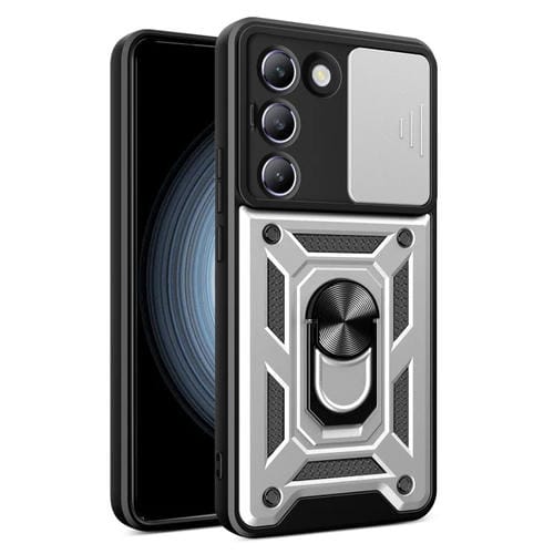 Funda para Teléfono con Diseño de TPU y PC con Cubierta Deslizante para Cámara para Vivo V30 Lite 5G India/Y100 Idn (Plateada)