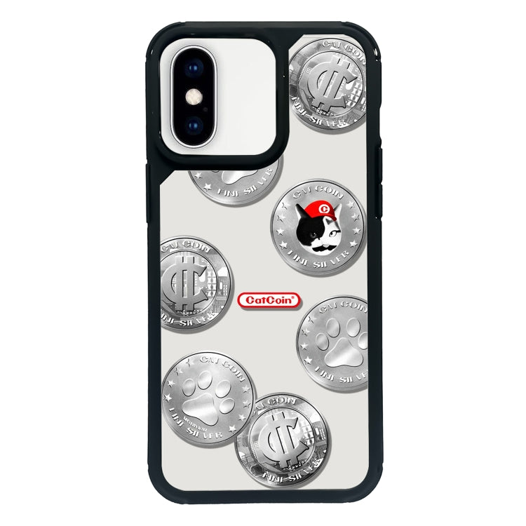 Funda para Teléfono PC iPhone X/Xs Cobertura Total (Gato con Moneda Plateada)
