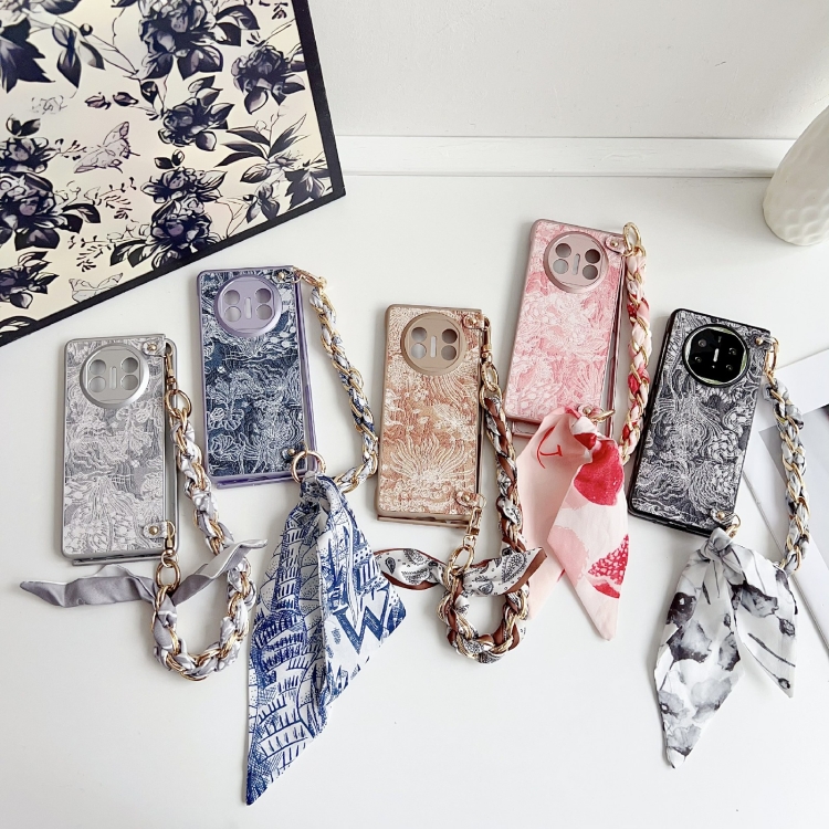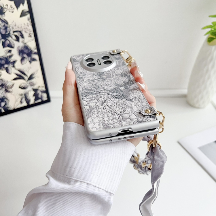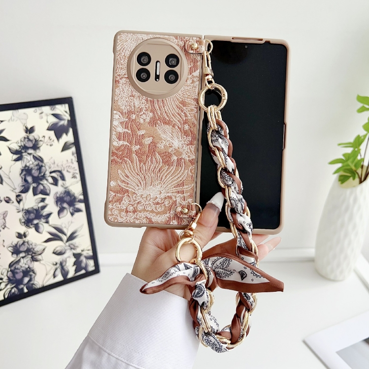 Funda para Teléfono Huawei Mate X3/X5 Bordado Diy Cobertura Total con Bufanda y Pulsera (Naranja)