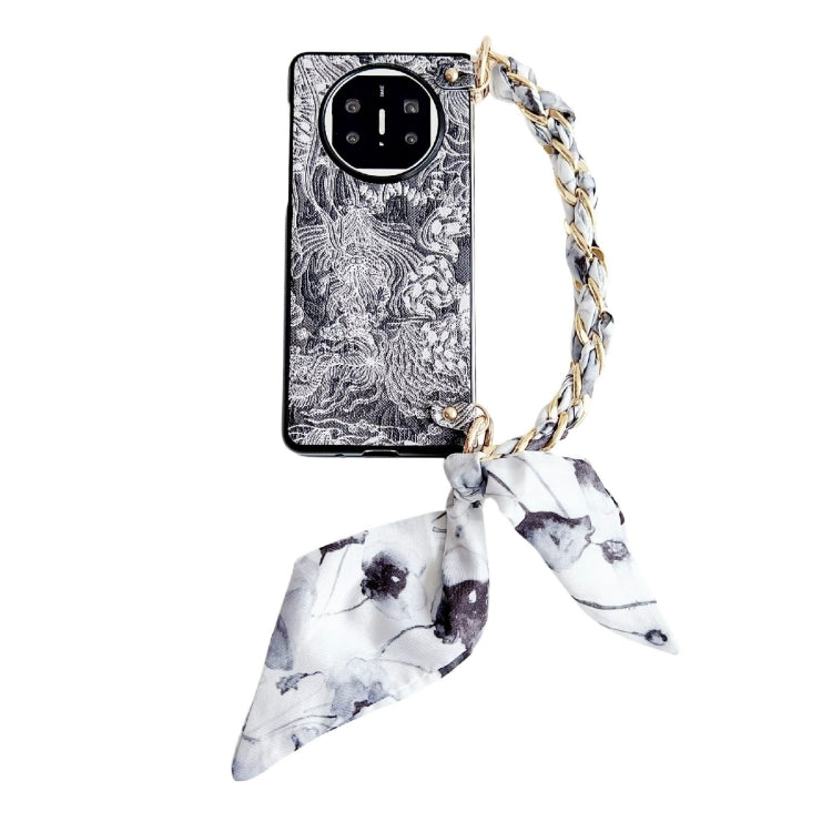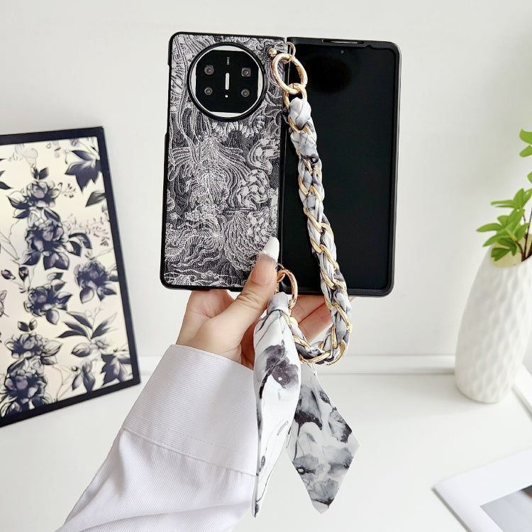 Funda para Teléfono Huawei Mate X3/X5 Bordado DIY Cobertura Total con Bufanda y Pulsera (Negra)