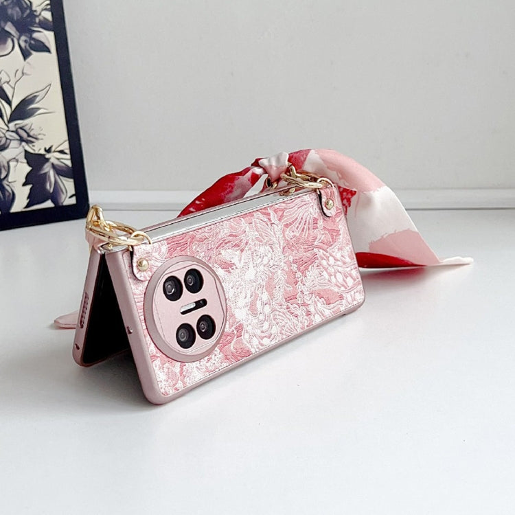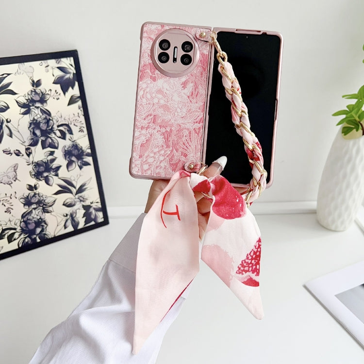 Funda para Teléfono Huawei Mate X3/X5 con Bordado Diy Cobertura Total Bufanda y Pulsera (Rosa)