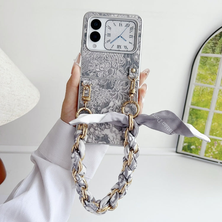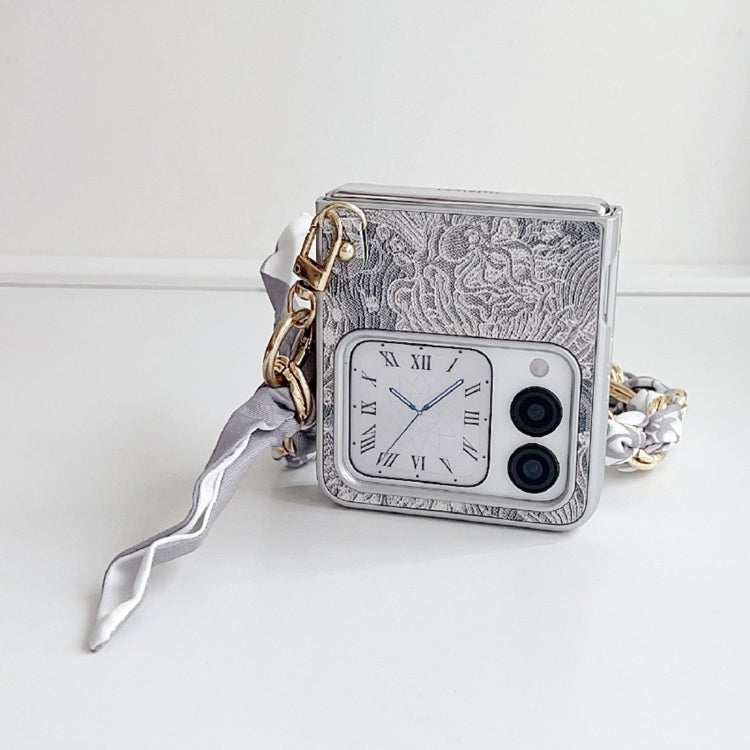 Funda para Huawei Nova Flip con Bordado DIY Cobertura Total con Bufanda y Pulsera (Gris)
