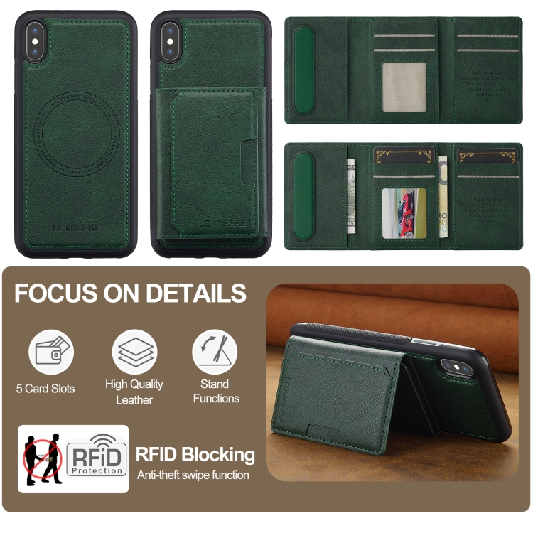 Funda para Teléfono Lc.Imeeke L5 Series con Funda para Tarjeta Rfid Desmontable Magsafe para iPhone Xr (Verde)