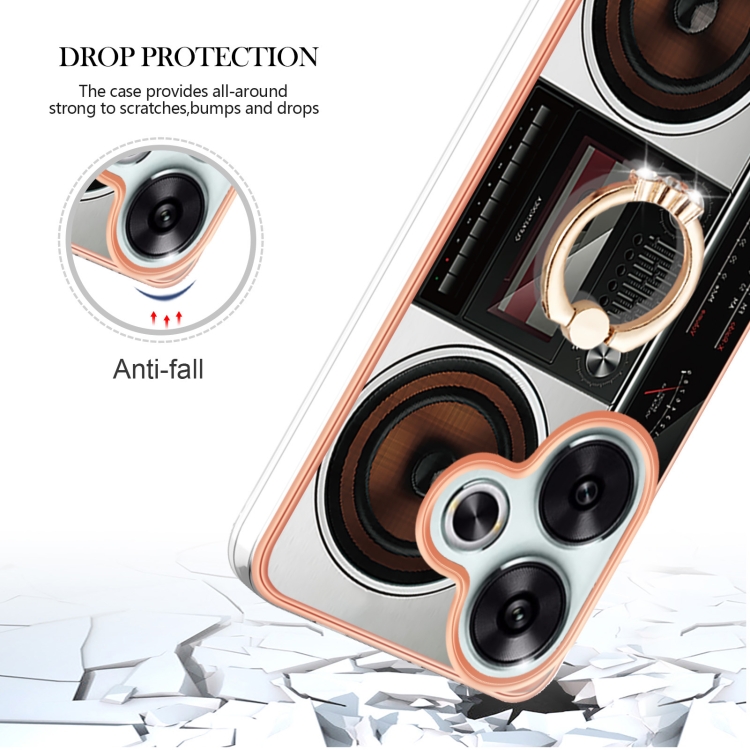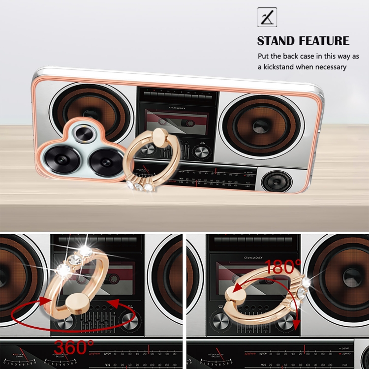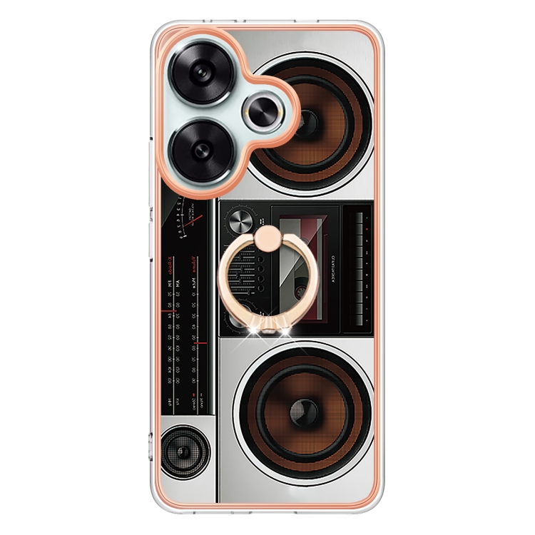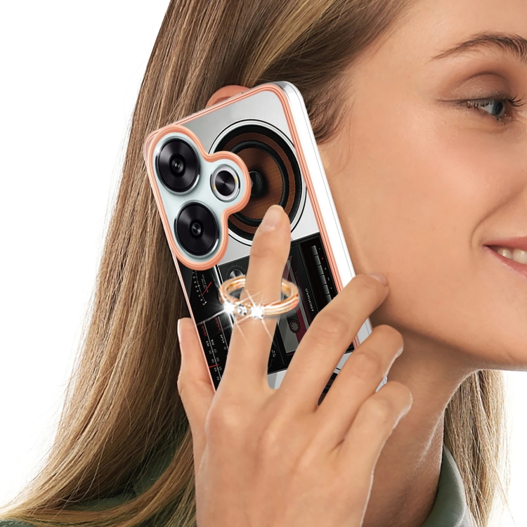 Funda para Teléfono con Galvanoplastia Imd de Doble Cara para Xiaomi Poco F6 5G con Soporte para Anillo (Radio Retro)