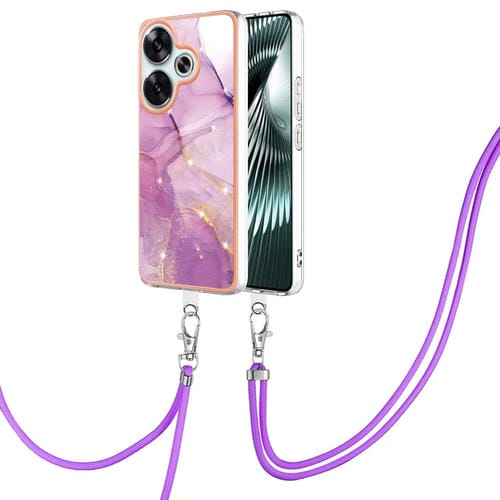 Funda para Teléfono con Imd de Doble Cara con Galvanoplastia de Mármol para Xiaomi Poco F6 5G con Cordón (Púrpura 001)