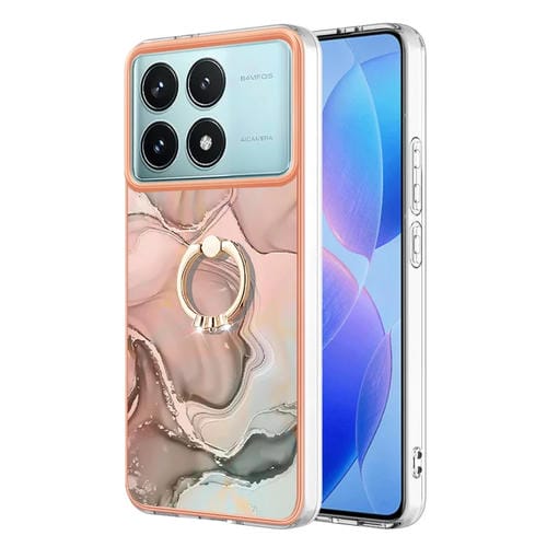 Funda para Teléfono con Imd de Doble Cara con Galvanoplastia de Mármol y Anillo para Xiaomi Poco F6 Pro 5G (Oro Rosa 015)