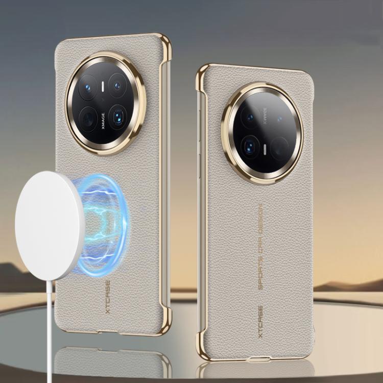 Funda para Teléfono Gkk Cuero Galvanizado sin Bordes con Magsafe para Huawei Mate 70 Pro (Blanco)