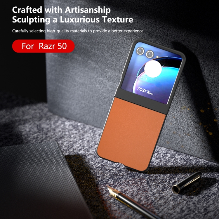 Funda para Teléfono Motorola Razr 50 con Marco Negro de Cuero Sintético y Cobertura Total (Naranja)