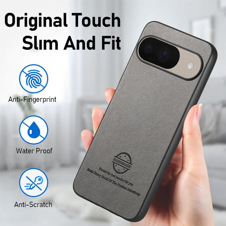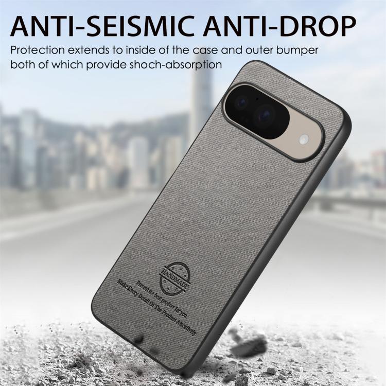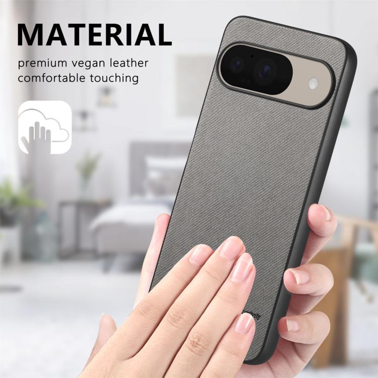 Funda para Teléfono Google Pixel 9/9 Pro Parte Trasera Piel y Tejido de Sarga (Gris)