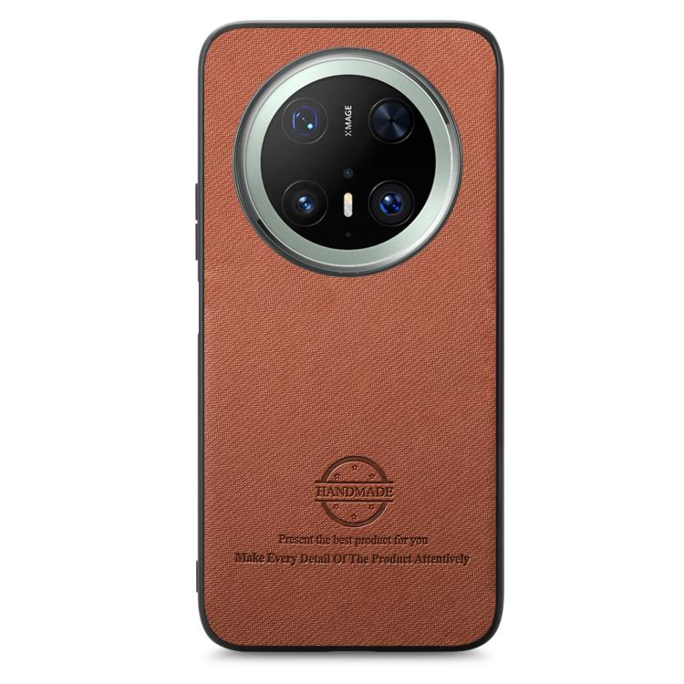 Funda para Teléfono Huawei Mate 70 Pro+ con Parte Trasera de Piel y Tejido de Sarga (Marrón)