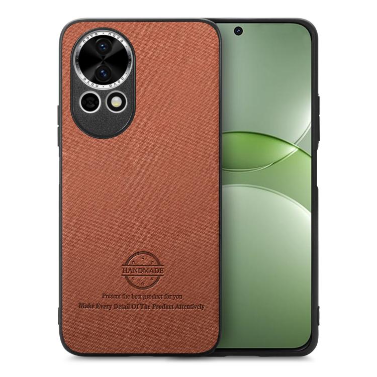 Funda para Teléfono Huawei Nova 13 con Parte Trasera de Piel y Tejido de Sarga (Marrón)