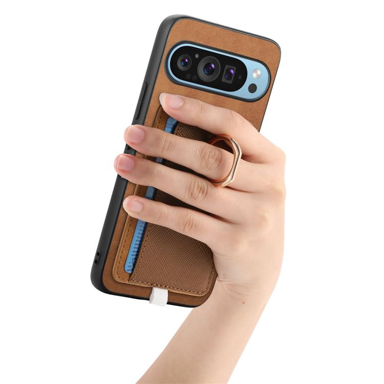 Funda para Google Pixel 7A Magsafe con Ranuras para Tarjetas y Anillo Lateral (Marrón)
