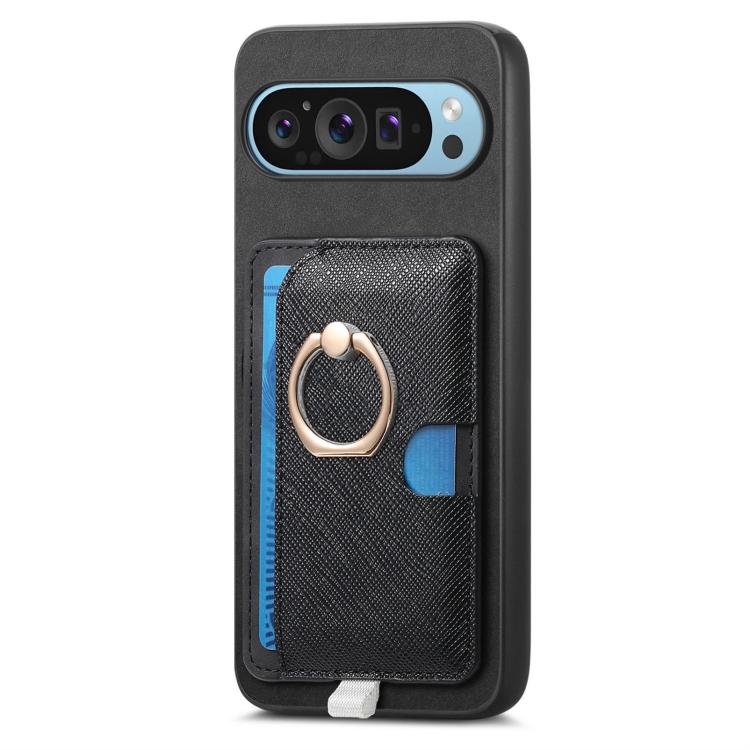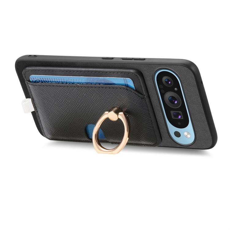 Funda para Google Pixel 7A con Ranuras para Tarjetas, Diseño Retro Cruz, Anillo Lateral (Negro)