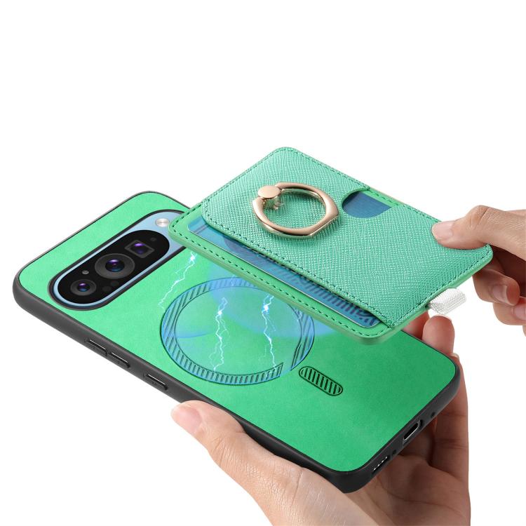 Funda para Google Pixel 9 Pro XL Magsafe con Ranuras para Tarjetas y Anillo Lateral (Verde)