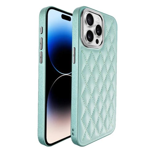 Funda para Teléfono Serie Plaid iPhone 14 Pro Max Revestimiento Galvanizado 9D (Azul Cian)