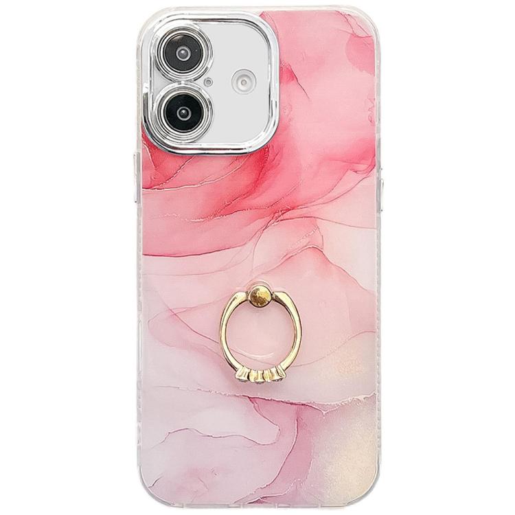 Funda para Teléfono iPhone 16 Soporte de Anillo Textura Mármol Galvanizado (Rosa S2)