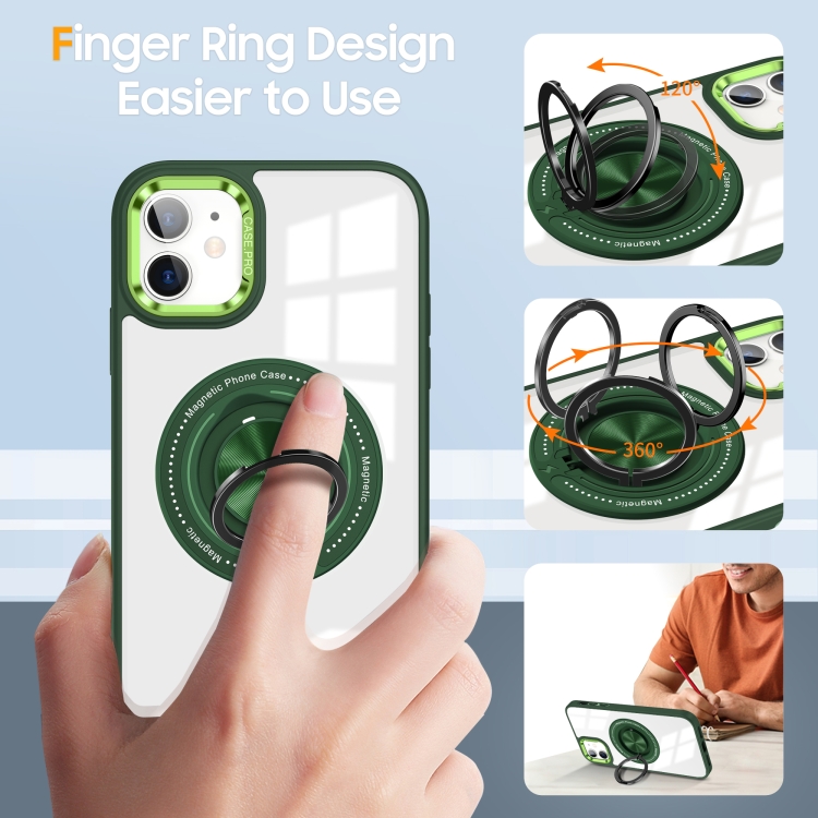 Funda para Teléfono iPhone 12 Soporte Anillo Giratorio Magnético (Verde Oscuro)