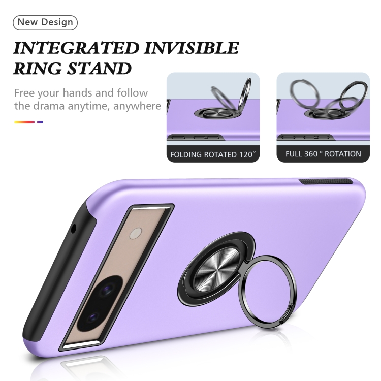 Funda para Teléfono Google Pixel 8A con Soporte de Anillo Magnético TPU Híbrido (Morado)