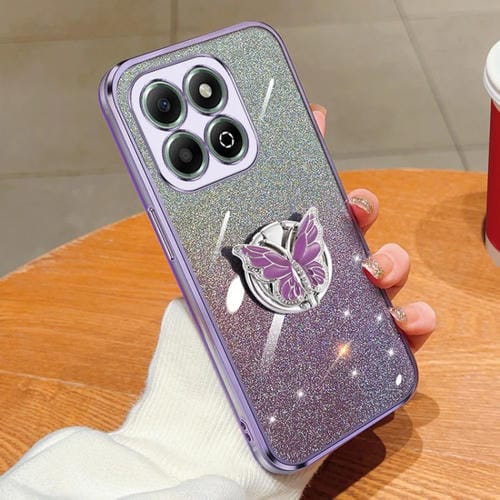 Funda para Teléfono Honor X6B con Soporte de Mariposa y Purpurina Degradada TPU (Morado)