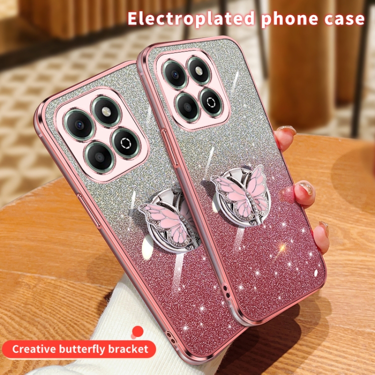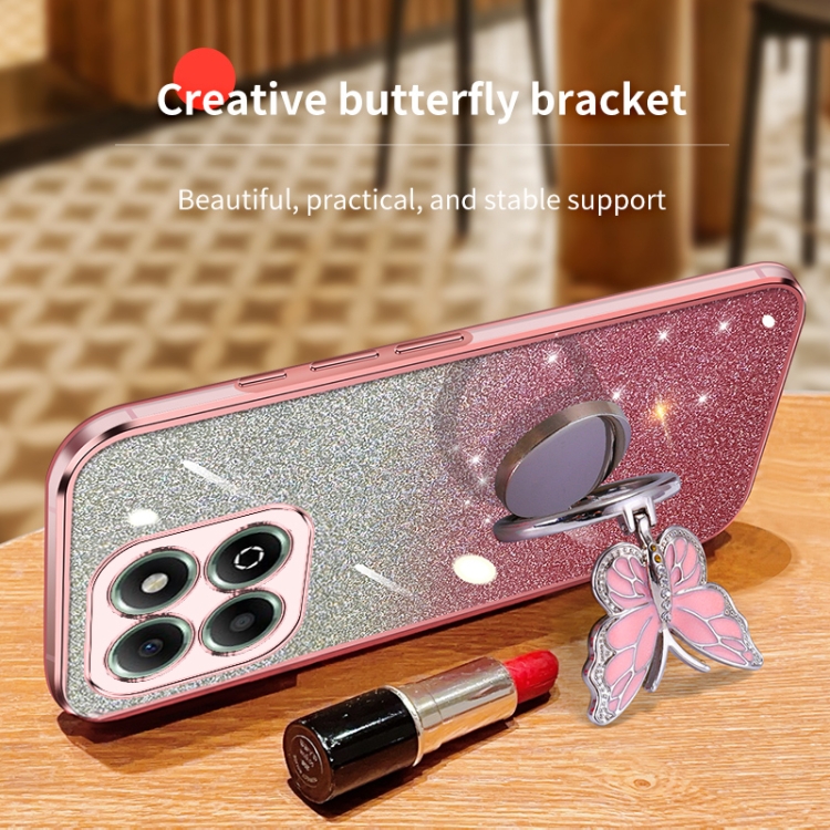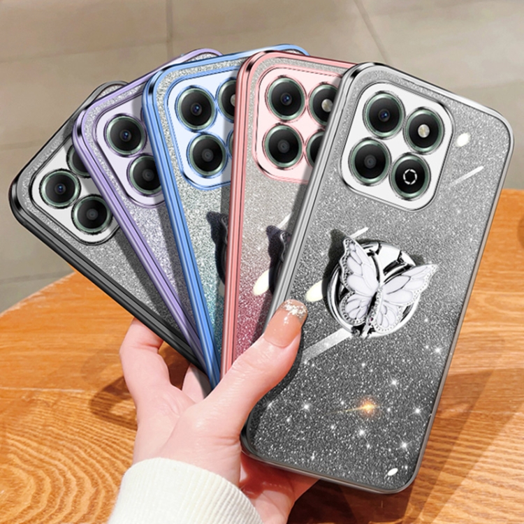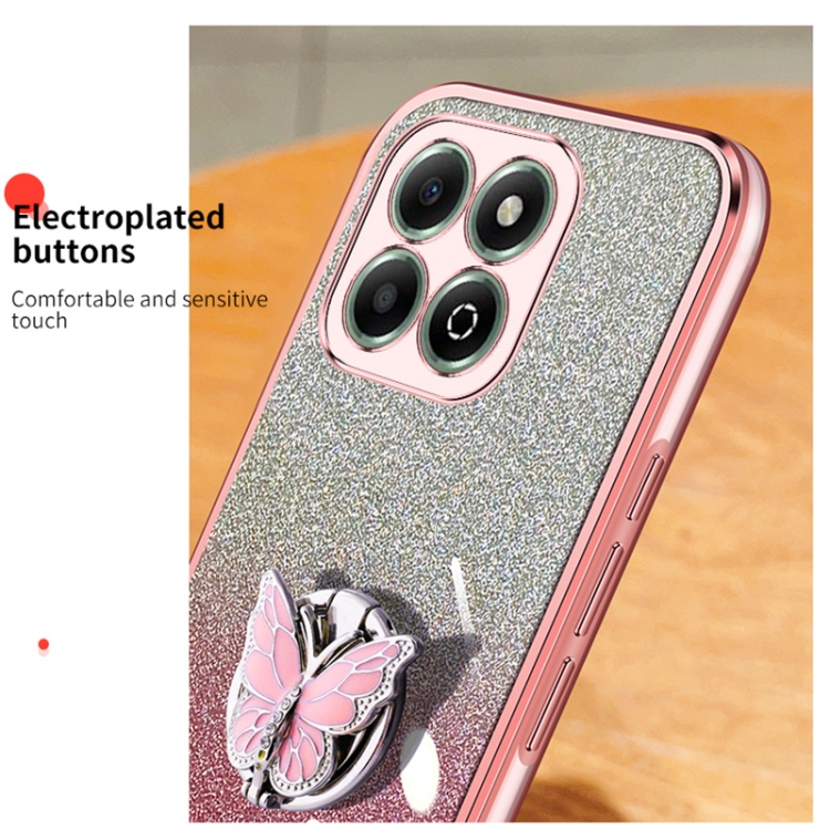 Funda para Teléfono Honor X6B con Soporte Mariposa Purpurina Degradada Revestimiento TPU (Azul Sierra)