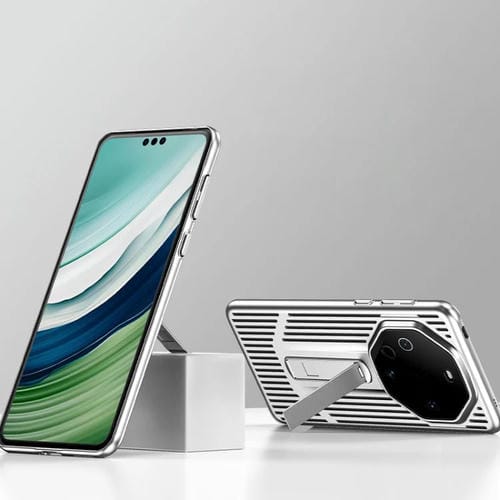 • 1x Funda para Teléfono Huawei Mate 60 Pro con Soporte de Refrigeración (Blanco Plateado)