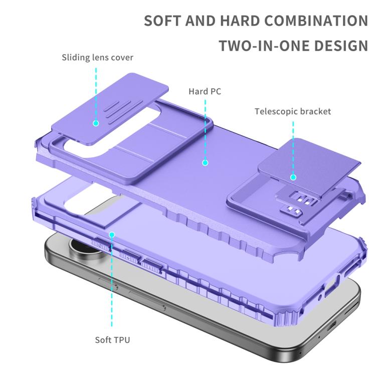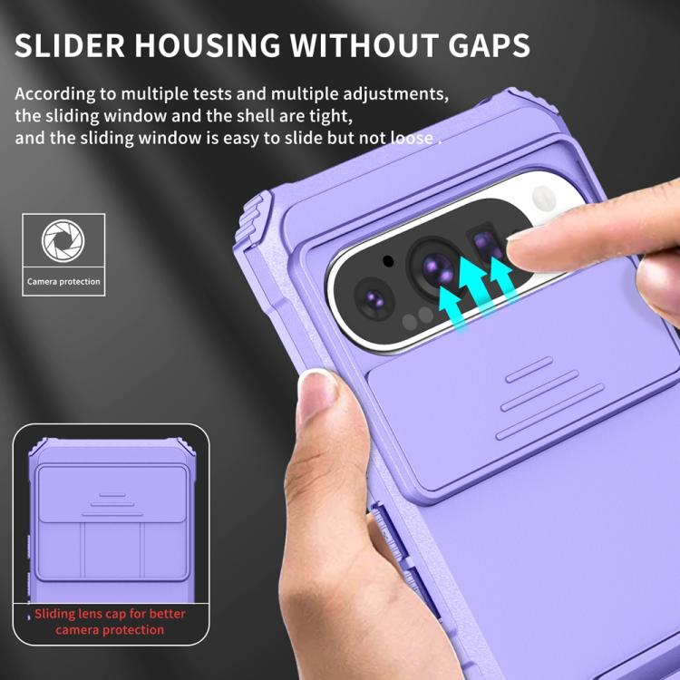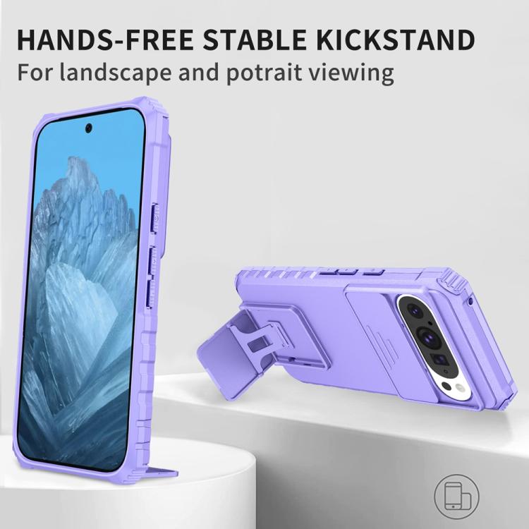 Funda para Teléfono Google Pixel 9 Pro con Soporte Estereoscópico Deslizante Camshield (Morado)