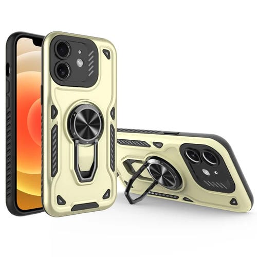 Funda para Teléfono iPhone 12 TPU PC Soporte Giratorio Metal (Beige)