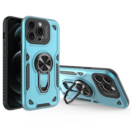 Funda para teléfono con soporte giratorio de metal TPU PC magnético para iPhone 12 Pro (Azul)