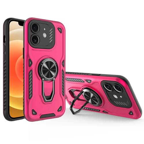 Funda para Teléfono iPhone 12 Soporte Giratorio Metal TPU PC (Rosa Rojo)