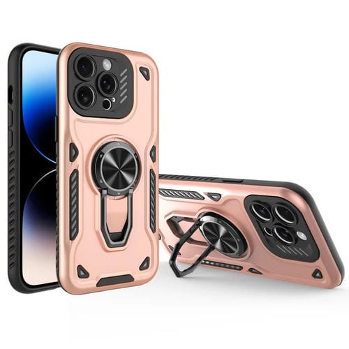 Funda para Teléfono iPhone 14 Pro Soporte Giratorio Metal TPU PC (Dorado)