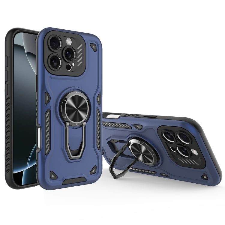 Funda para Teléfono iPhone 16 Pro Max con Soporte Giratorio Metal TPU PC (Azul Oscuro)
