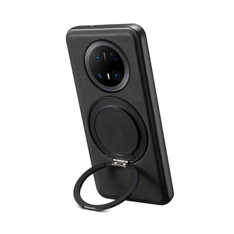 Funda para Teléfono Denior A14 con Soporte Giratorio Magsafe y Tacto de Piel para Huawei Mate 70 Pro/70 Pro+ (Negra)