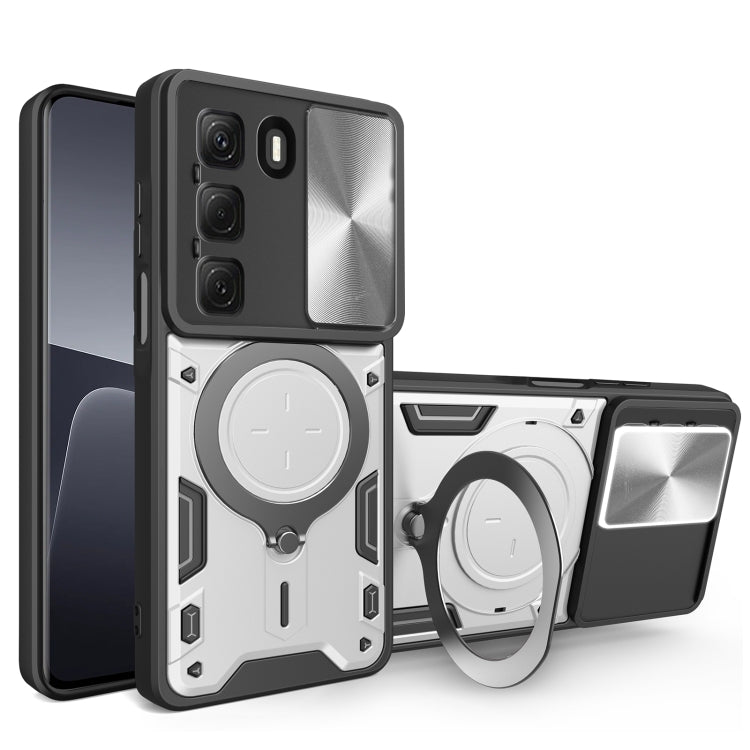 Funda para Teléfono Infinix Hot 50 4G con Soporte Magnético Deslizante y Textura de Cd (Plateada)