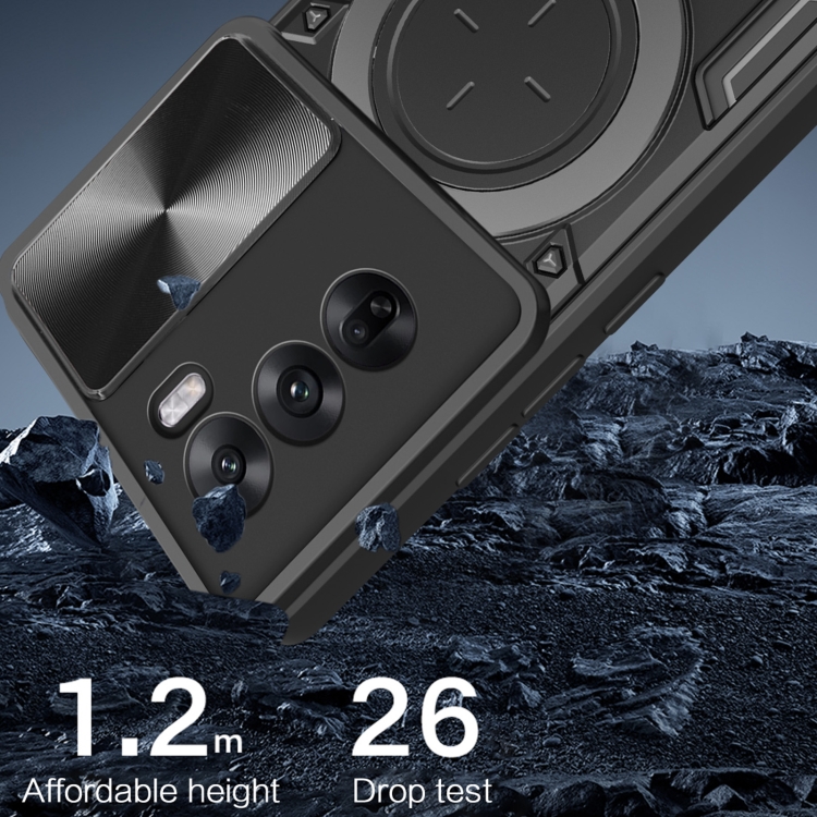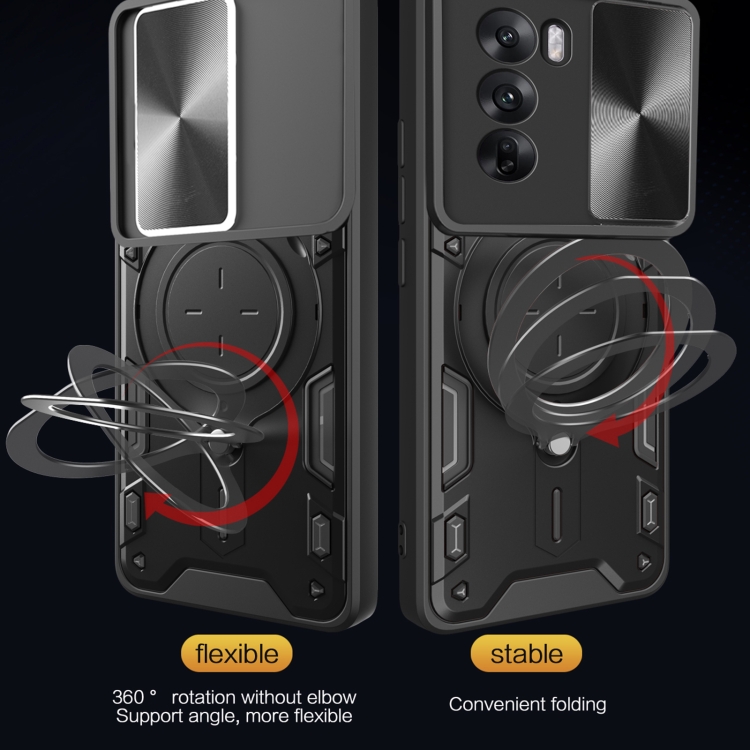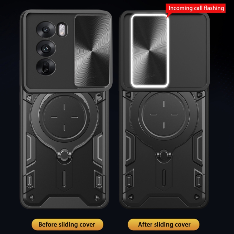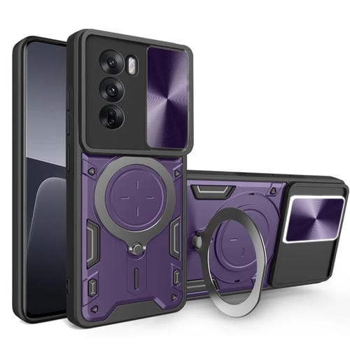 Funda para Teléfono con Soporte Magnético Deslizante con Textura de Cd para Oppo Reno12 5G Global (Morado)