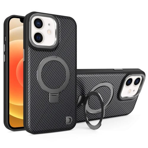 Funda para teléfono iPhone 12 con soporte Magsafe fibra de carbono (Negra)