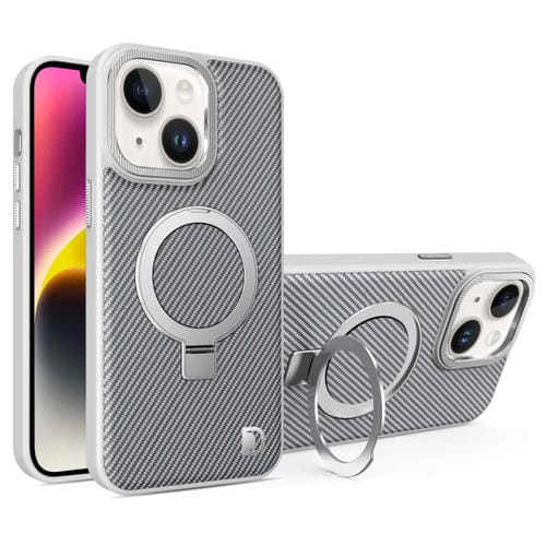 Funda para Teléfono Fibra de Carbono con Soporte Magsafe iPhone 14 (Gris)