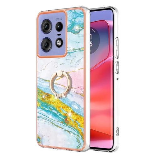Funda para Teléfono Motorola Edge 50 Pro con Soporte para Anillo y Revestimiento Mármol Imd TPU (Verde)