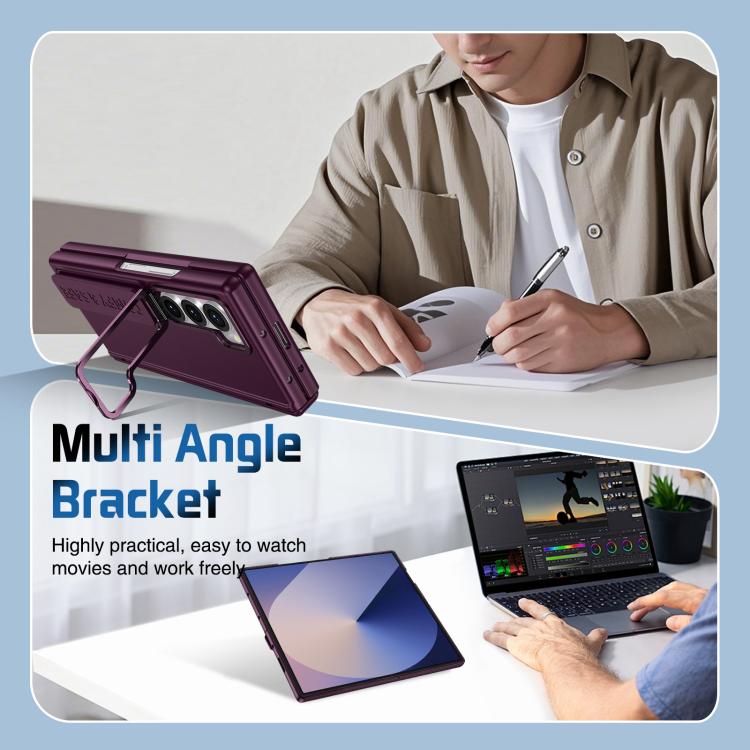 Funda para teléfono con soporte para lente integrada y correa para Samsung Galaxy Z Fold6 (rojo vino)