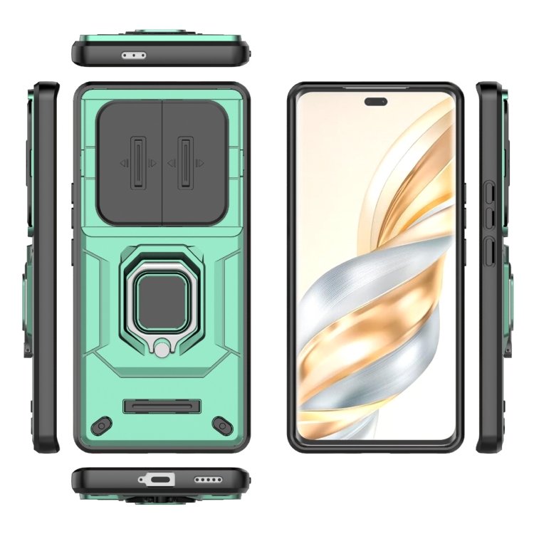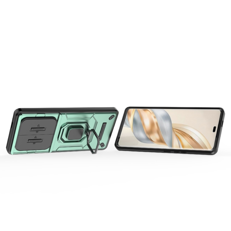 Funda para Teléfono Honor X60 Pro 5G con Soporte y Carcasa Deslizante TPU y PC (Verde)