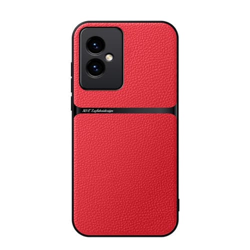 Funda para Teléfono Honor 100 con Tapa Magnética de Cuero de Lichi a Prueba de Golpes (Rojo)