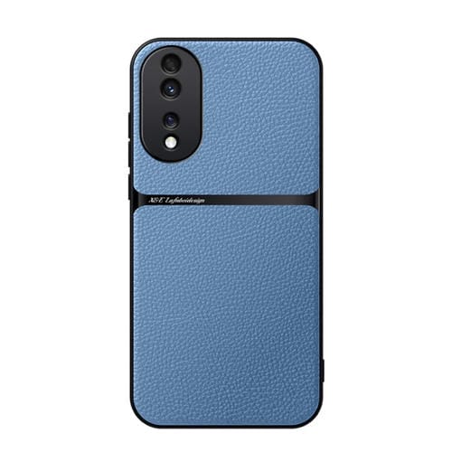 Funda para Teléfono Honor 80 con Tapa Magnética de Cuero de Lichi a Prueba de Golpes (Azul)